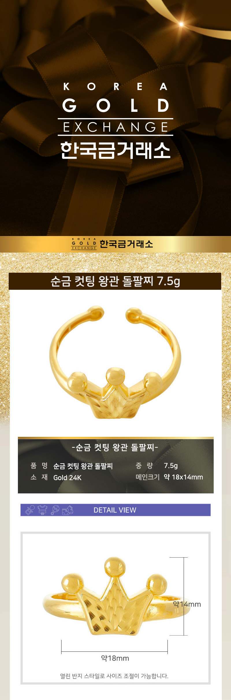• 순금 컷팅 왕관 돌팔찌 7.5g