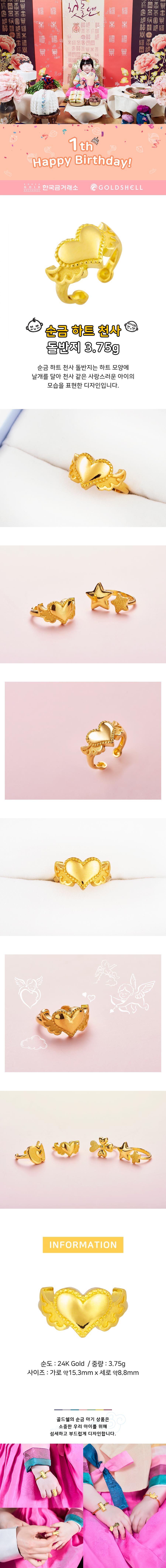 • 순금 하트 천사 돌반지 3.75g